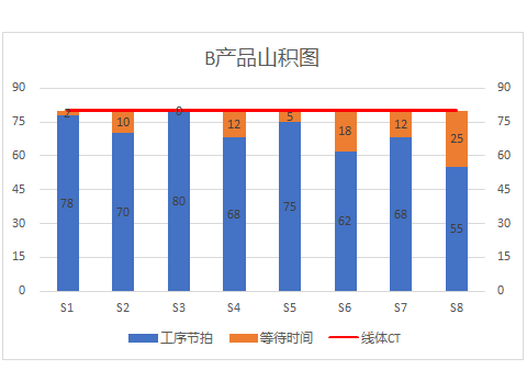 線體CT(Cycle Time)=瓶頸工序節(jié)拍=80S;